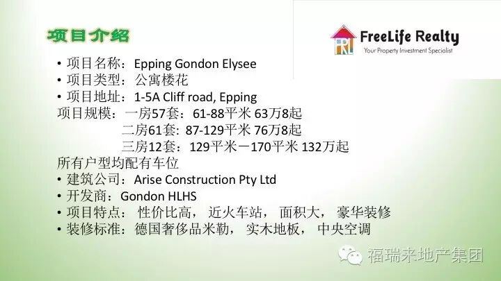 高品质优雅小区,全植被覆盖,天然氧吧, 用料考究, 木地板,室内中央空调,米勒厨具。 步行200米Epping Town Centre, 600米可至火车站公车站, 性价比高。