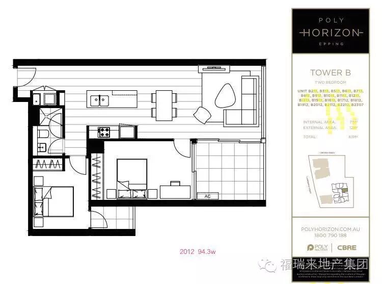 epping 两房一卫,正东户型, 户型方正,双阳台, 采光好,  84万起