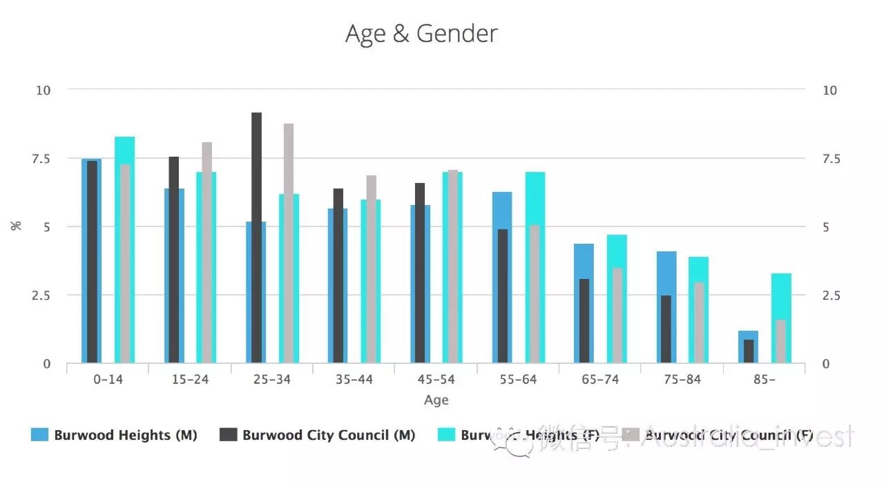 Burwood Heights 的人口年龄分布以年轻人为主。