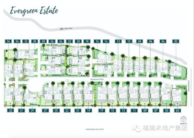 一共34块地块,土地面积300-400平米, 4房或者5房可供选择