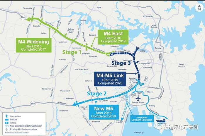 Westconnex高速公路工程长达33公里,其中包括14公里的地面公路和19公里的隧道公路,预计将于2023年中旬完成,总花销高达近170亿澳元。Westconnex高速公路的开发将为新南威尔士州带来超过20亿澳元的直接经济效益以及创造超1万个就业机会,其也将大大刺激Parramatta路沿线的商业与房地产业的繁荣。工程完成后,将大大缩短居住在奥林匹克公园区的居民前往CBD与机场的时间。每日也可减少大约4000辆大货车从Parramatta路上穿行,这也将改善Parramatta路周边的居住环境