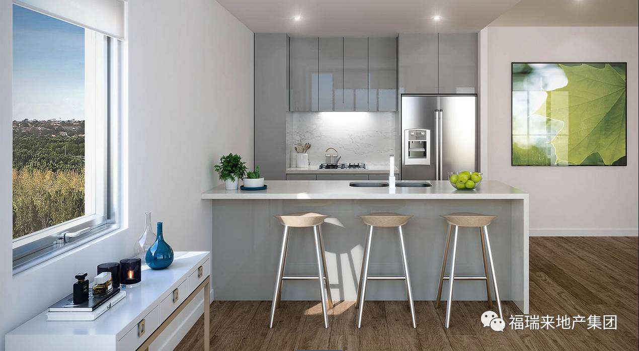 项目秉承了开发商Meriton对室内装修一贯的严格要求,超大的落地玻璃窗让住户享受到充足阳光的同时,也让住户可以全方位的欣赏周围悉尼最顶级的自然环境,无论是成荫的绿树还是粼粼的波光全都一览无余。
