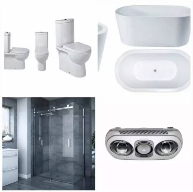 -卫生间:独立式浴缸+无框玻璃洗澡间+三合一照明排风+镜后橱柜