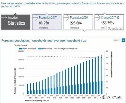 而整体人口的增长更为惊人,根据政府官方估测,到2036年,Camden的人口将会达到226604,涨幅为156.75%!!!
